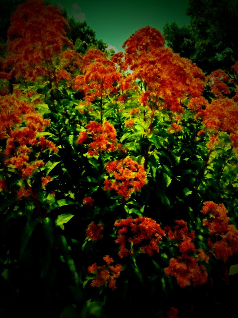The yellow-blacks, the blues, the stalks,
